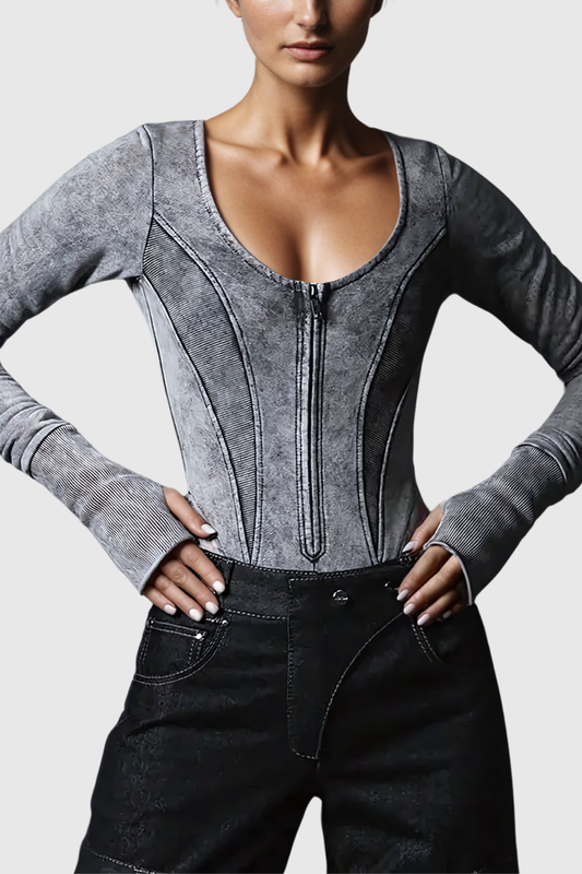 Adwen Bodycon Fermuar Desenli Bodysuit