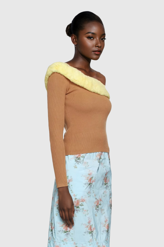 Afon Tek Omuz Uzun Kollu Triko Üst