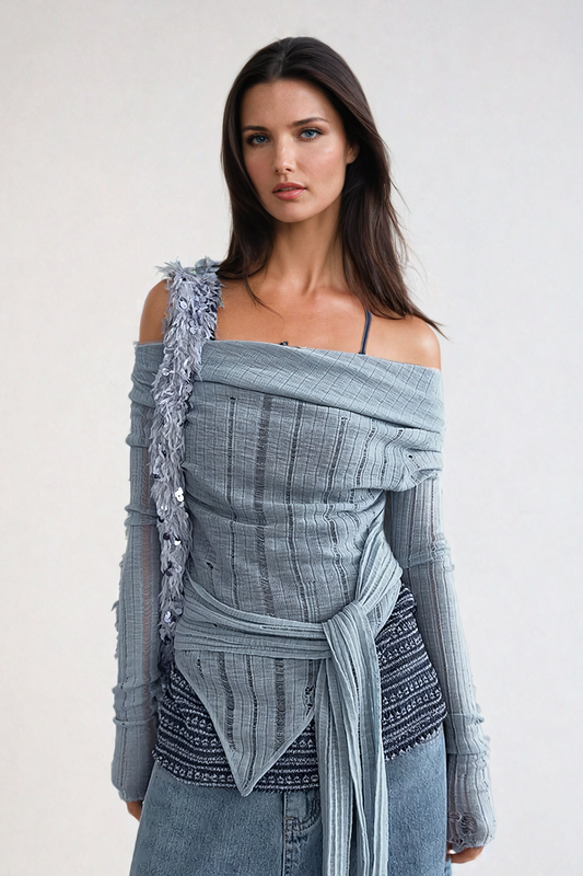 Ahe Düşük Omuzlu Bağcıklı Mavi Asimetrik Üst