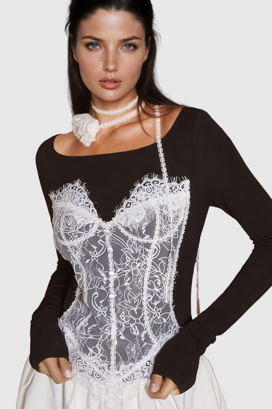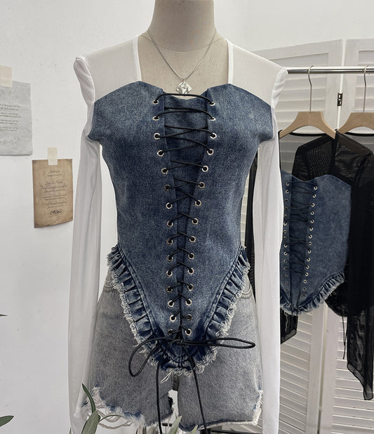 Adriana Denim Uzun Kollu Lace Straplez Üst