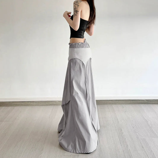 Evelyn Gri Geniş Paçalı Kargo Kot Pantolon