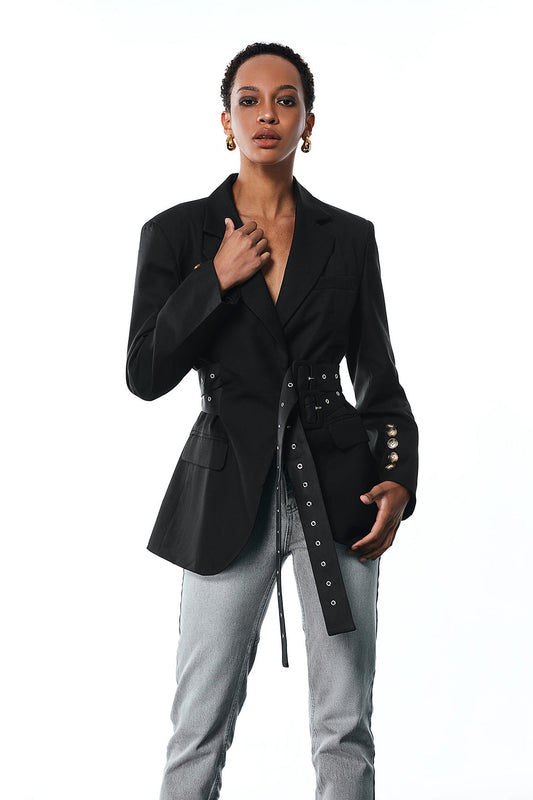 Aibhne Tokalı Yakalı Blazer (Siyah)