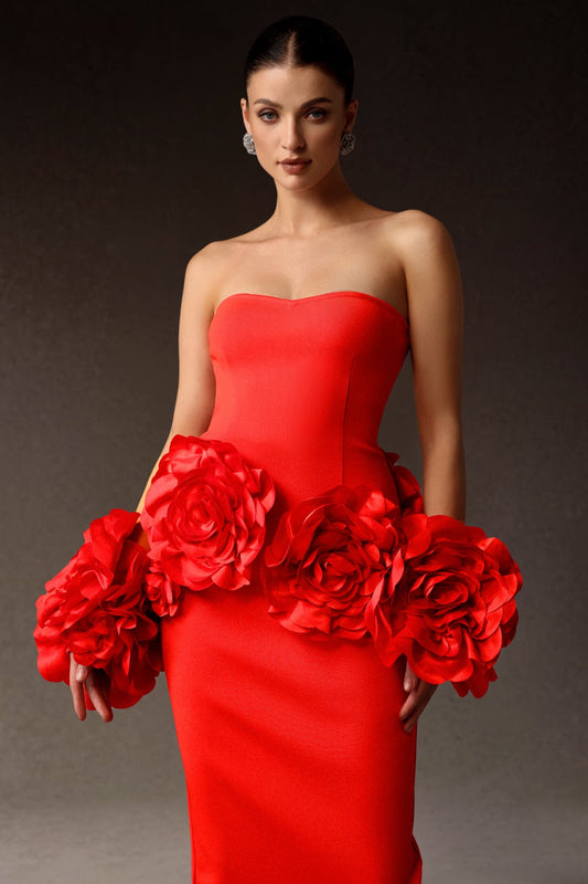 Molten Ivy Yırtmaçlı Taş İşlemeli Uzun Elbise