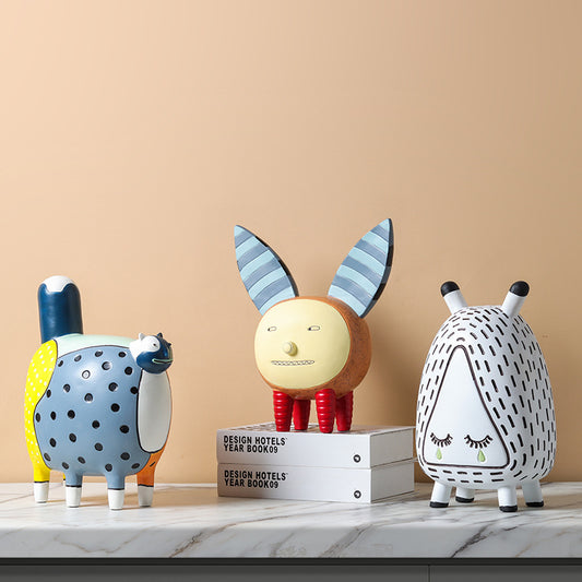Modern İskandinav reçine boyalı soyut hayvan figürleri