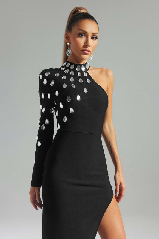 Sadie Walker Tek Omuzlu Taş Detaylı Bandaj Elbise