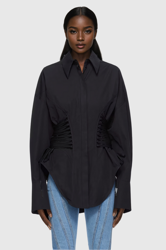 Bagheera Ruch Büzgülü Siyah Gömlek