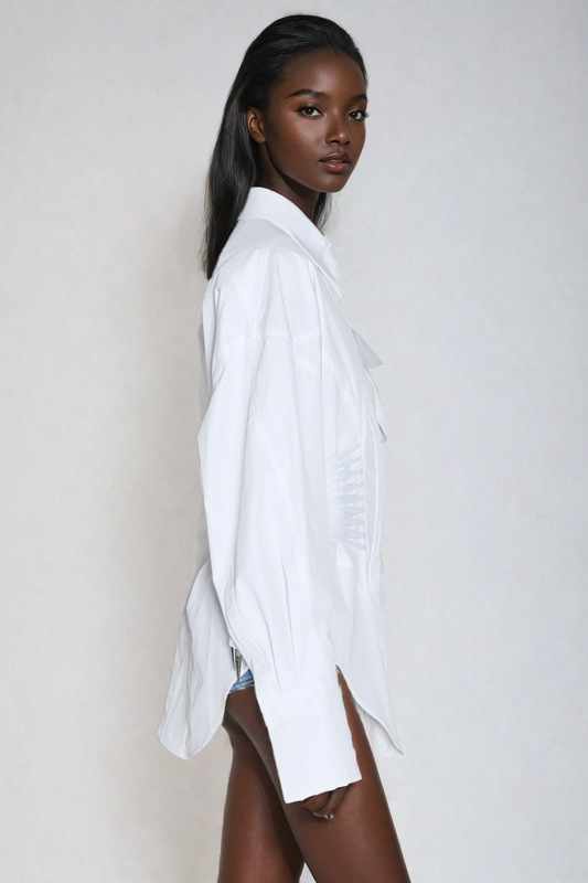Bagheera Büzgülü Bağlamalı Gömlek (Beyaz)