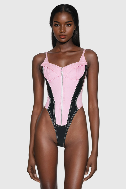 Balius Deconstruct Pembe Spagetti Bodycon Bodysuit
