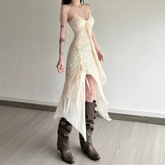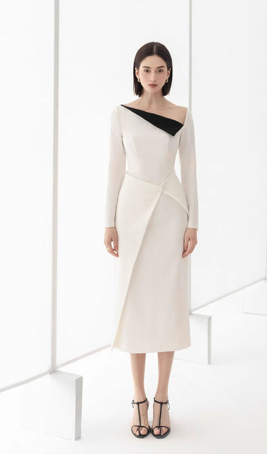 Sarah Jade Diyagonal Yaka Yırtmaçlı Midi Elbise
