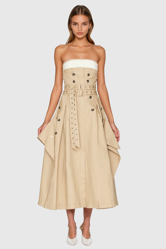 Olivia Hunter Kolsuz Bantlı Kat Detaylı Midi Elbise