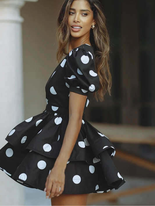 Madelyn V Yaka Kısa Kollu Mini Elbise
