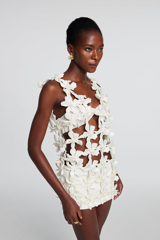 Kira Çiçekli Delikli Kolsuz Mini Elbise