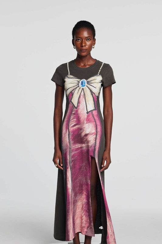 Ballard Büzgülü Yırtmaçlı Çiçekli Vücuda Oturan Maxi Elbise