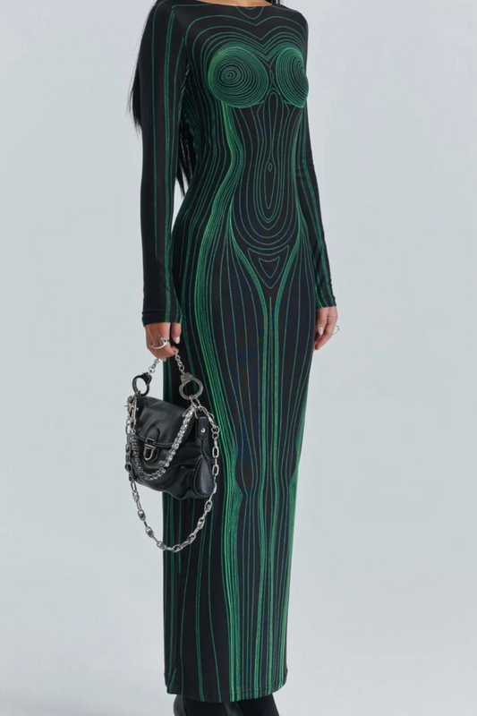 Kelsey Vücuda Oturan Tokalı Taşlı Örgü Maxi Elbise
