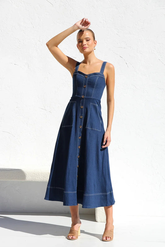 Sundrenched Pamuk Kuşgözü İşlemeli Uzun Elbise