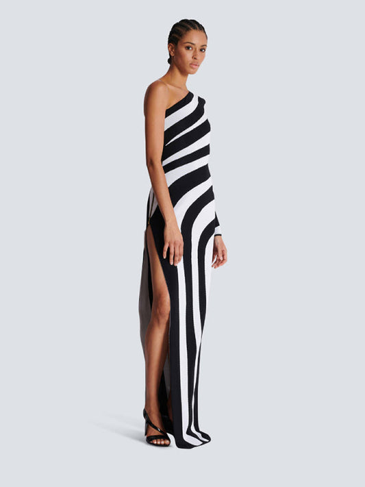 Sarah Jade Diyagonal Yaka Yırtmaçlı Midi Elbise