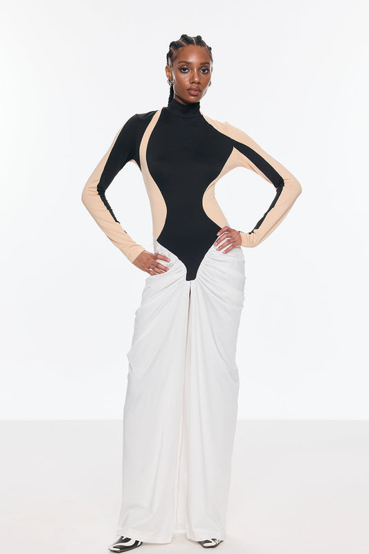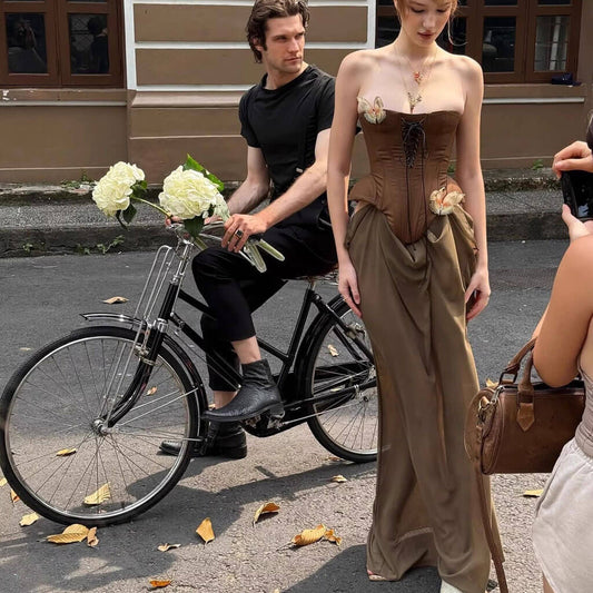 Goddess Me Strapless Corset Cutout Drapeli Uzun Elbise