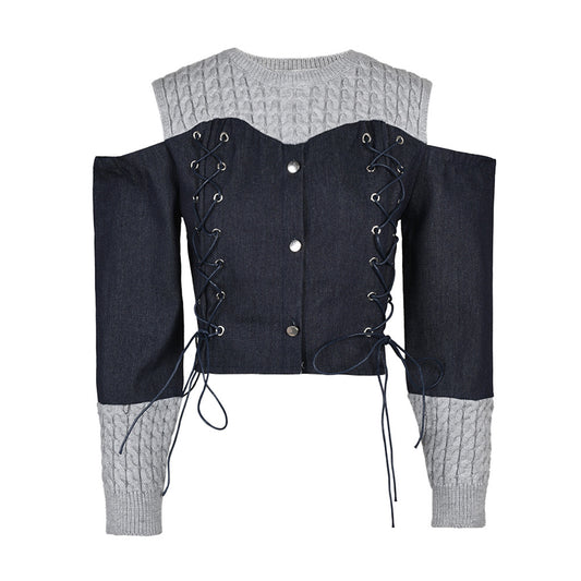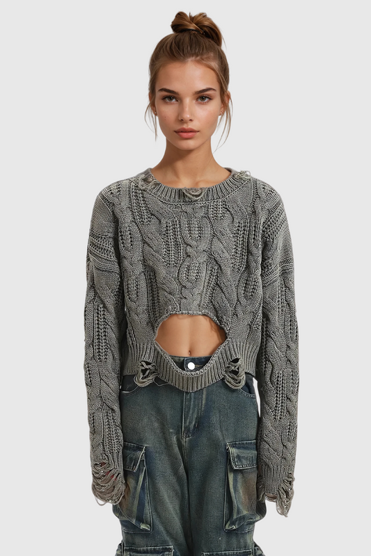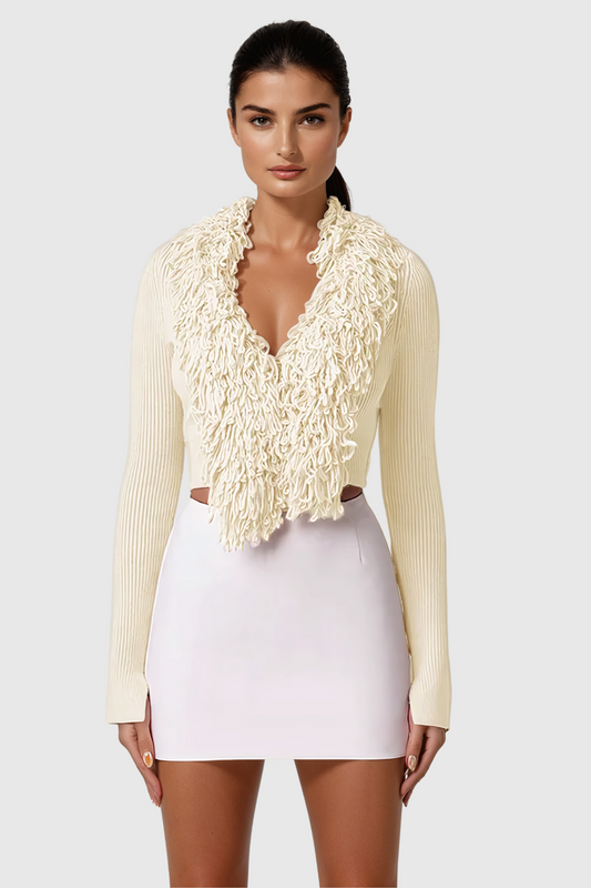 • Aideen Püsküllü Kesikli Örgü Kısa Üst