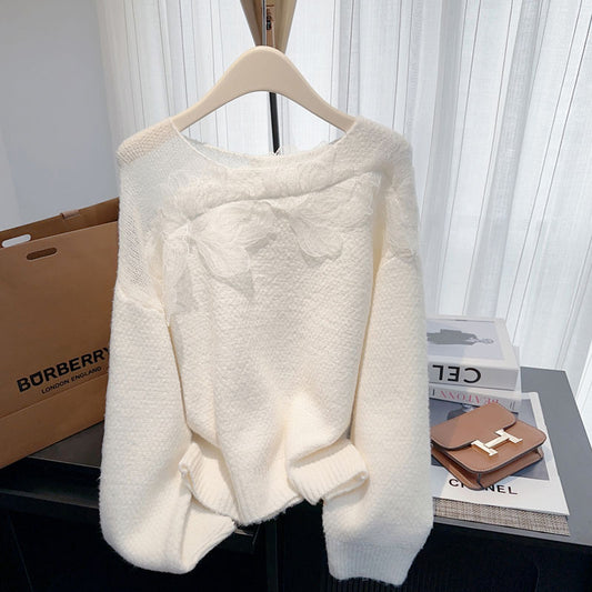 Jasmin Çiçek Uzun Kollu Beyaz Triko Üst
