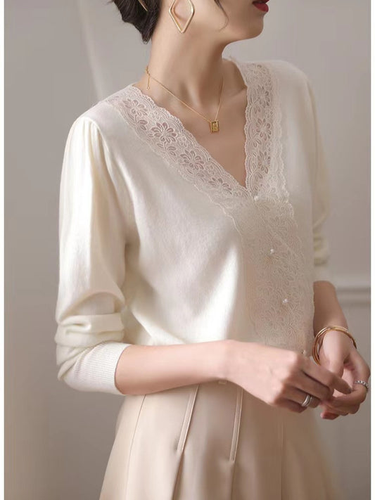 • Jasmin Çiçek Uzun Kollu Beyaz Triko Üst