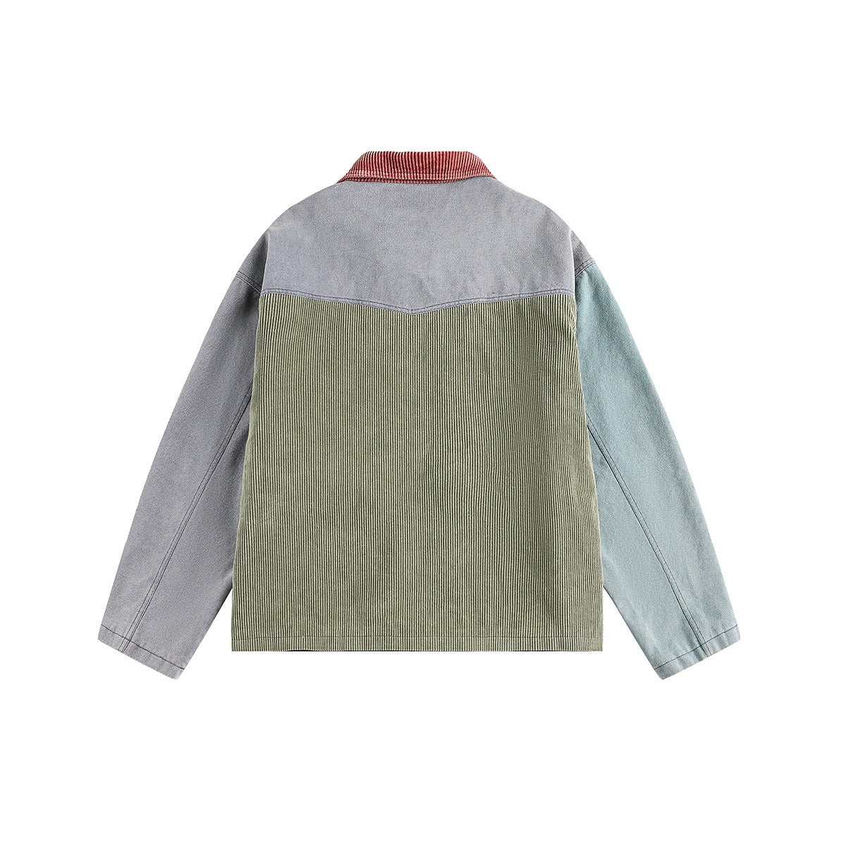 Yaka ve ön kısımda farklı dokular kullanılarak zengin bir el hissi ve kontrast oluşturulmuştur.