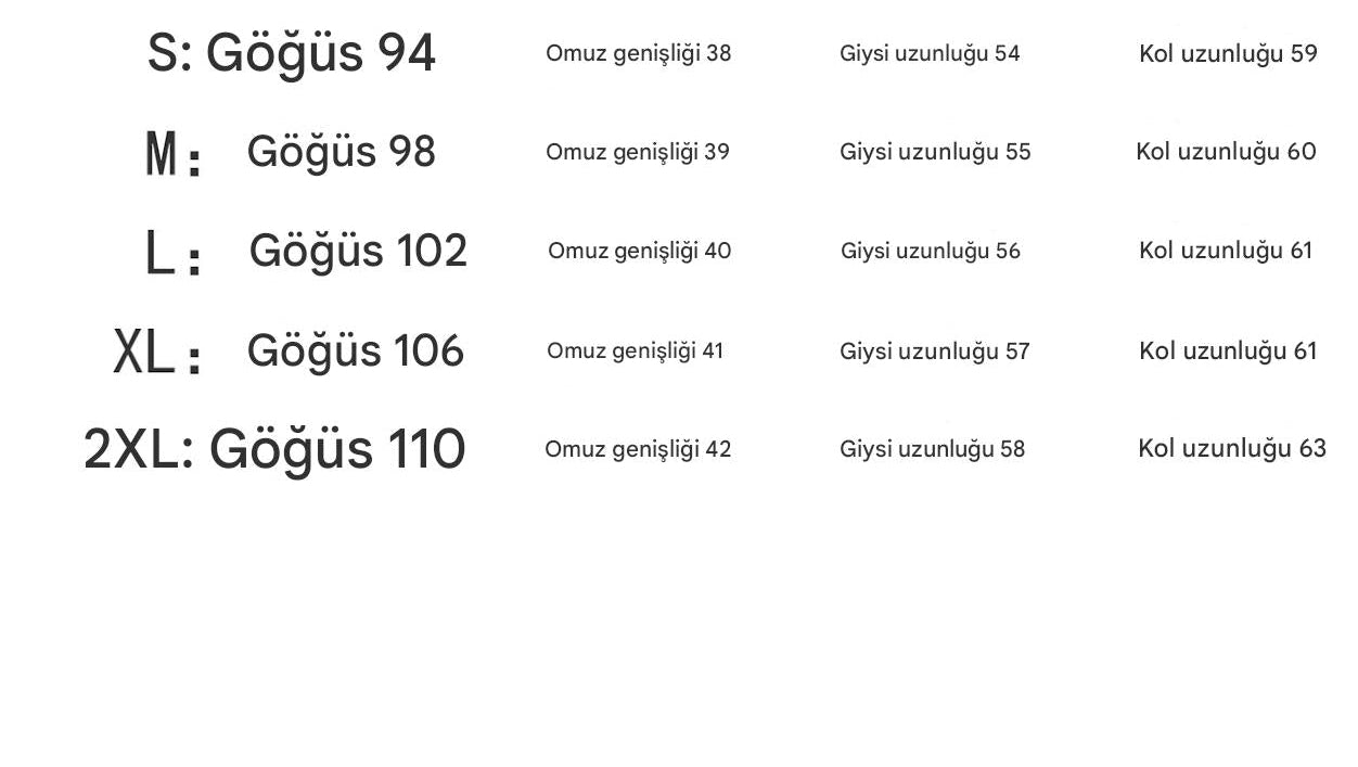 | Giysi uzunluğu | Kısa stil (40cm<uzunluk≤50cm) | Kol uzunluğu | uzun kollu |