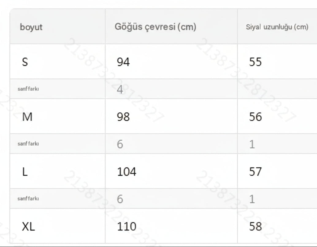 | Popüler dosyalar | Kontrast renk | Giysi uzunluğu | Sıradan stil (50CM<uzunluk≤65CM) |