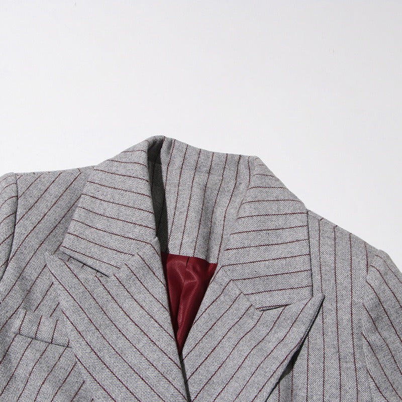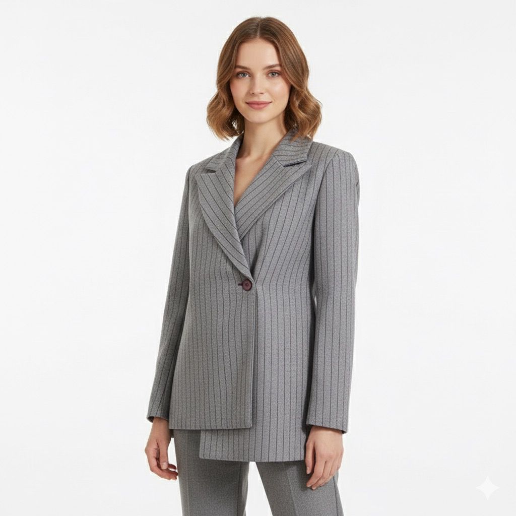 Tara Bang Asimetrik Tasarım Çizgili Ceket