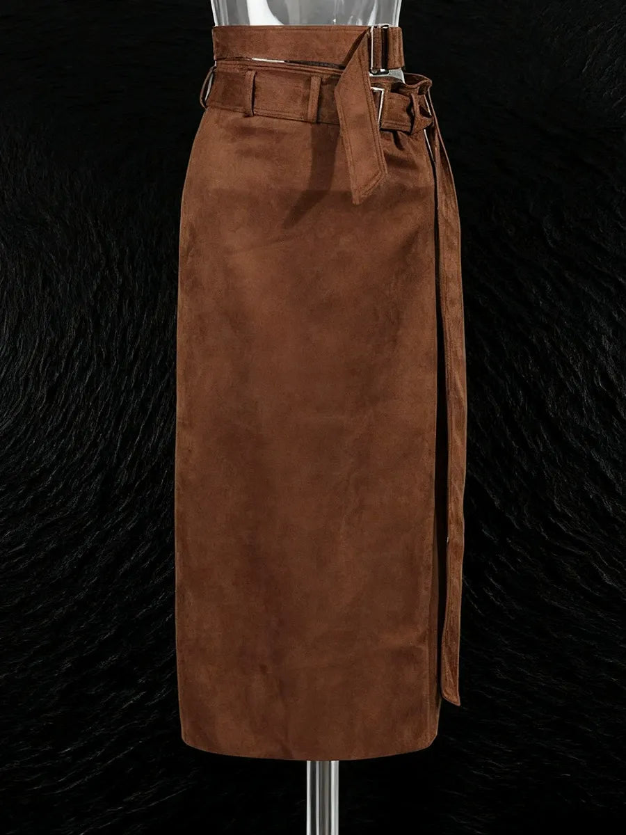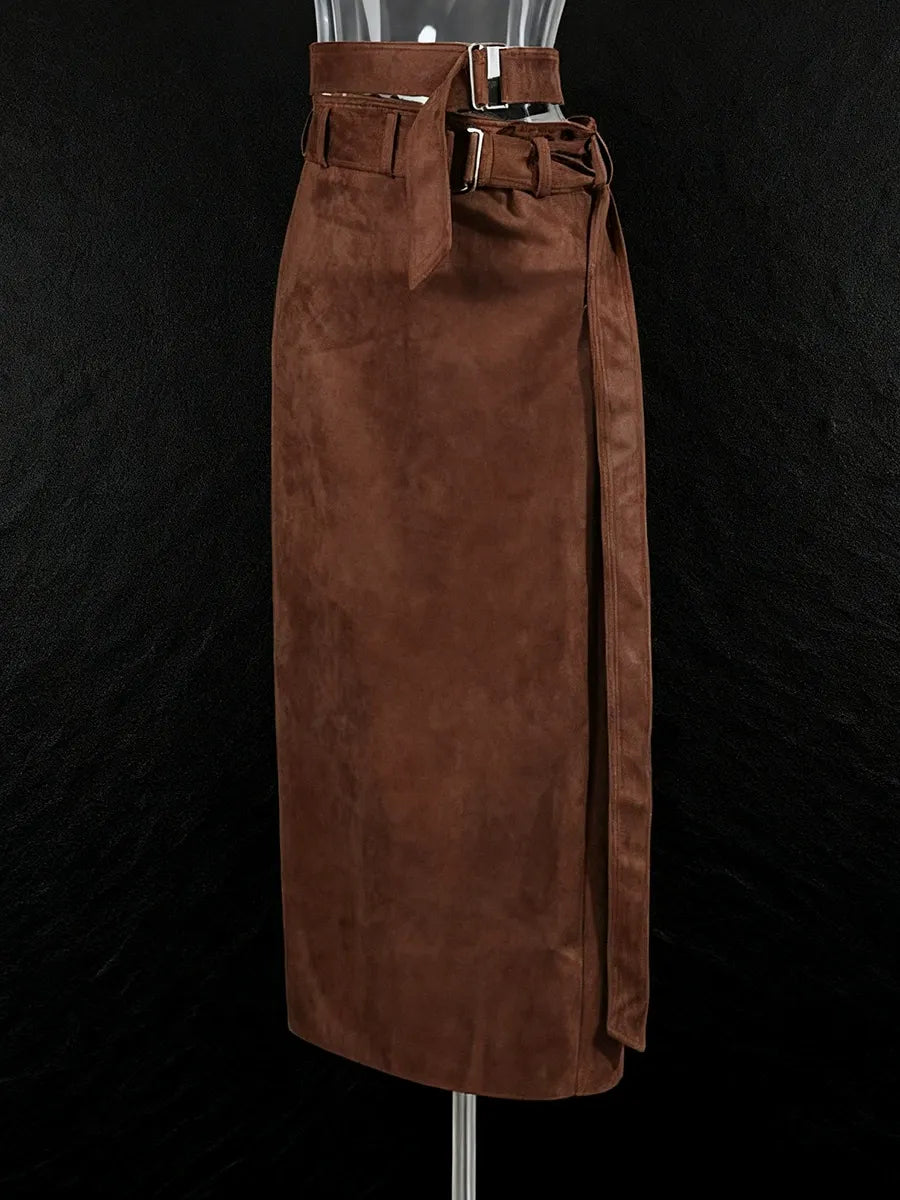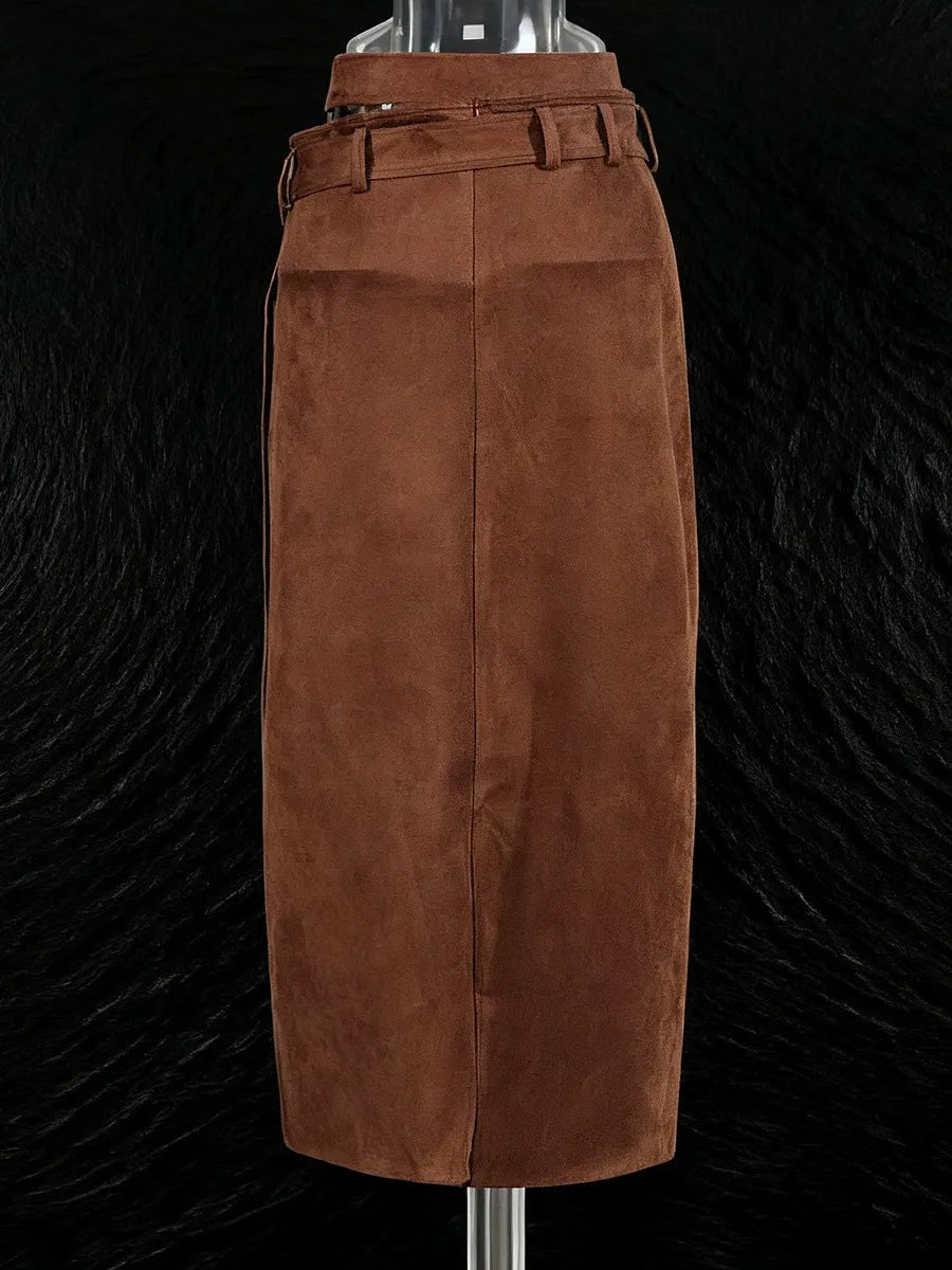Nadine Waltz Kemerli Yüksek Bel Süet Etek
