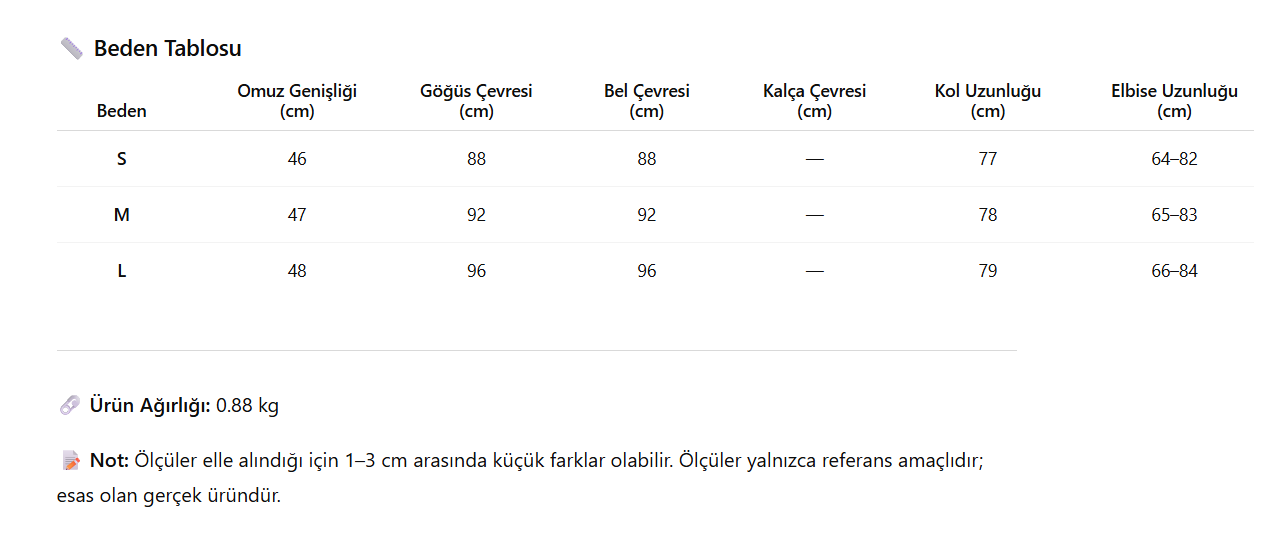 -Şu kategorilerdeki ürünler değiştirilemez ve iade edilemez: Bikiniler, mayolar, iç çamaşırları, tayt, çorap, ve aksesuarlar (kemer ve çanta hariç), abiyeler ve korseler (abiye ürünlerimiz özel üretim olduğu için iade edilememektedir.). Müşterilerimizin sağlığını ve güvenliğini ciddiye alıyoruz ve mahrem ürünler açıldıktan veya kullanıldıktan sonra yeniden satılamaz.