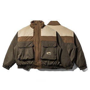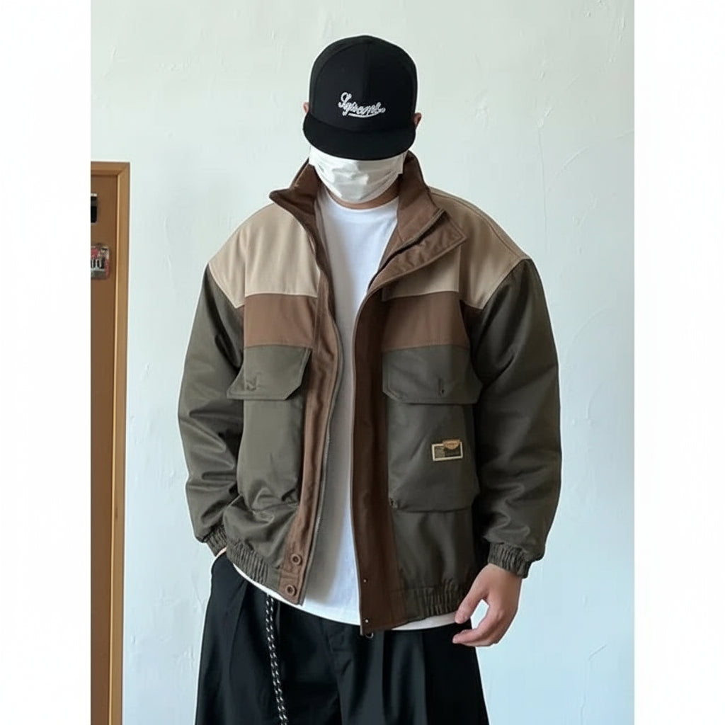LUZZ Renk Bloklu Dik Yaka Büyük Cepli Pamuklu Mont