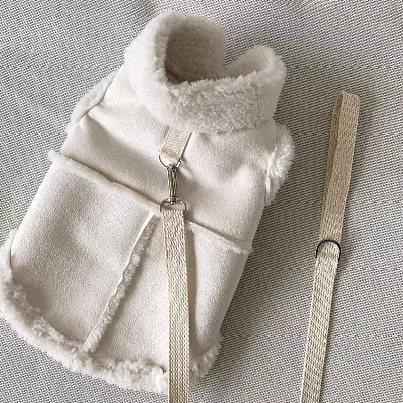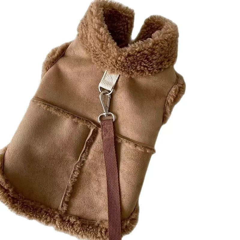 Nubuk kendinden tasmalı tasarım köpek yeleği