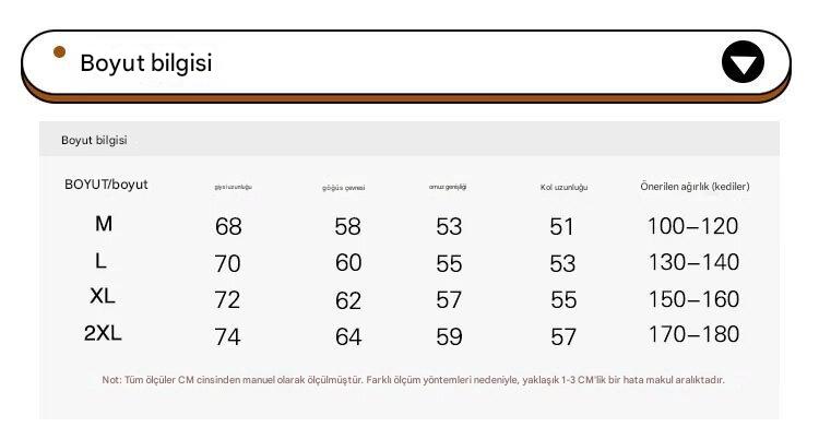 | Yaka tipi | Dik yaka | Kol uzunluğu | uzun kollu |