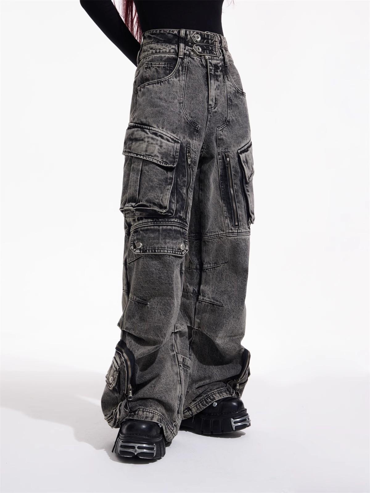 Aurora Realm Retro Çok Cepli Denim Pantolon