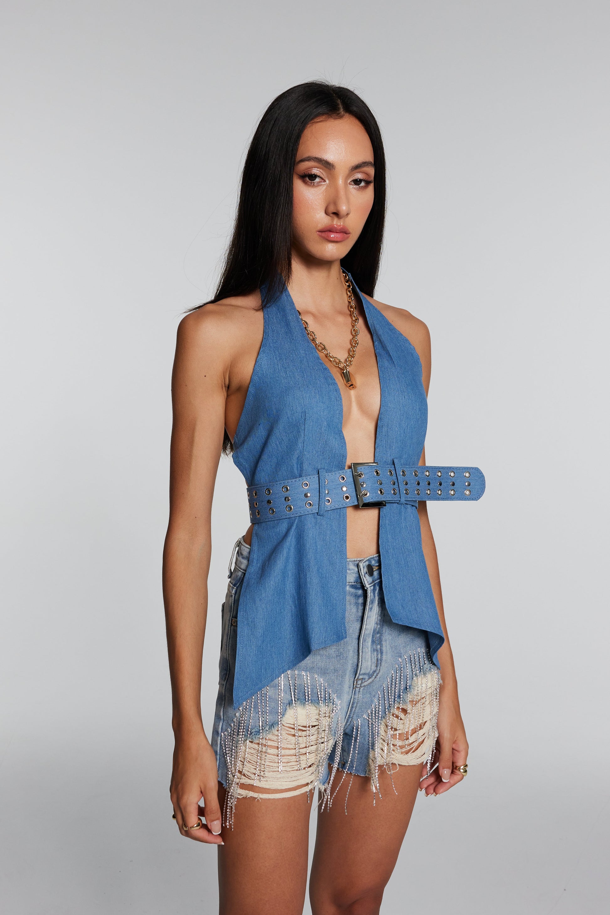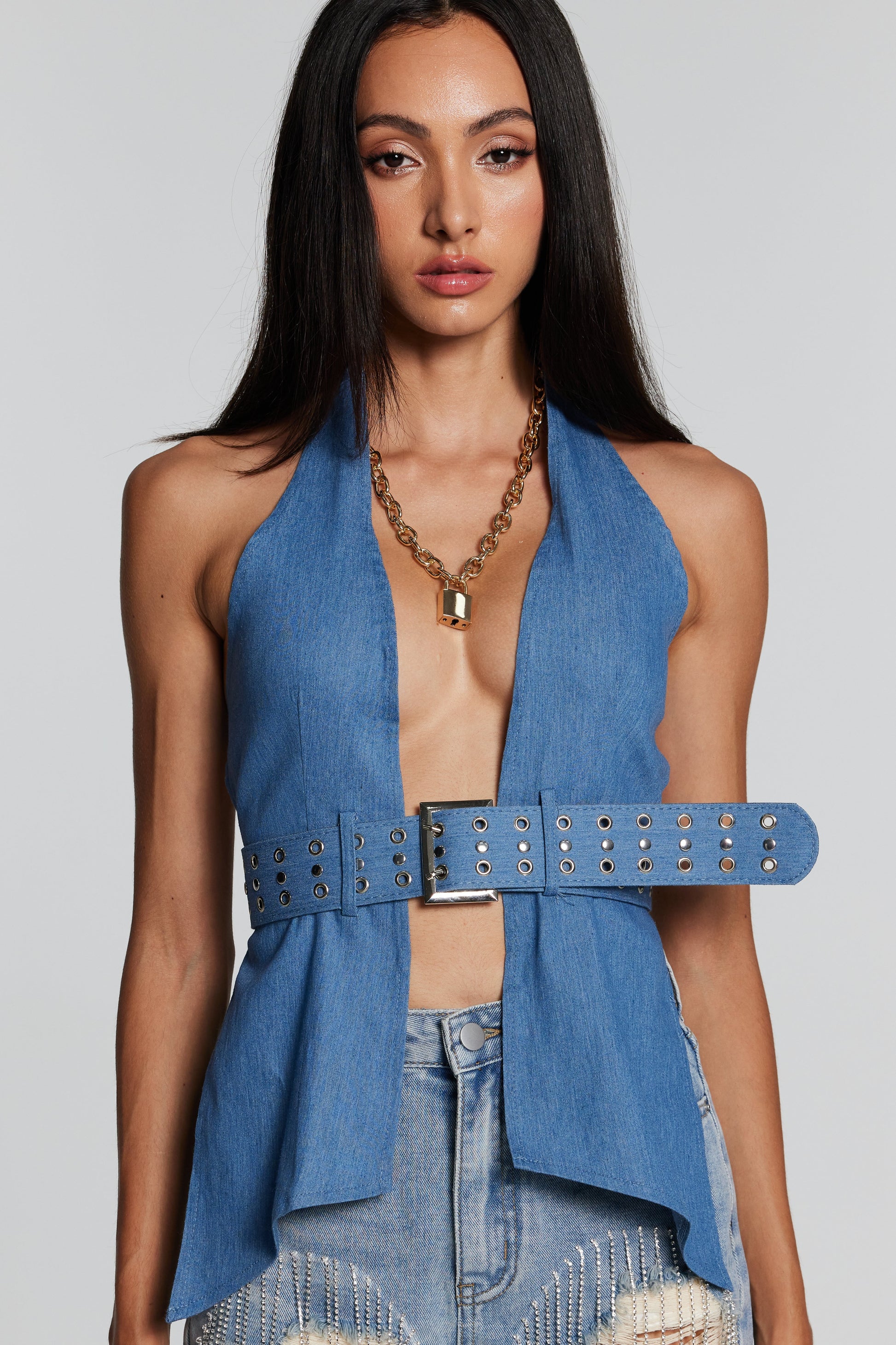 Mercy Tokalı Boyundan Bağlamalı Sırtsız Üst