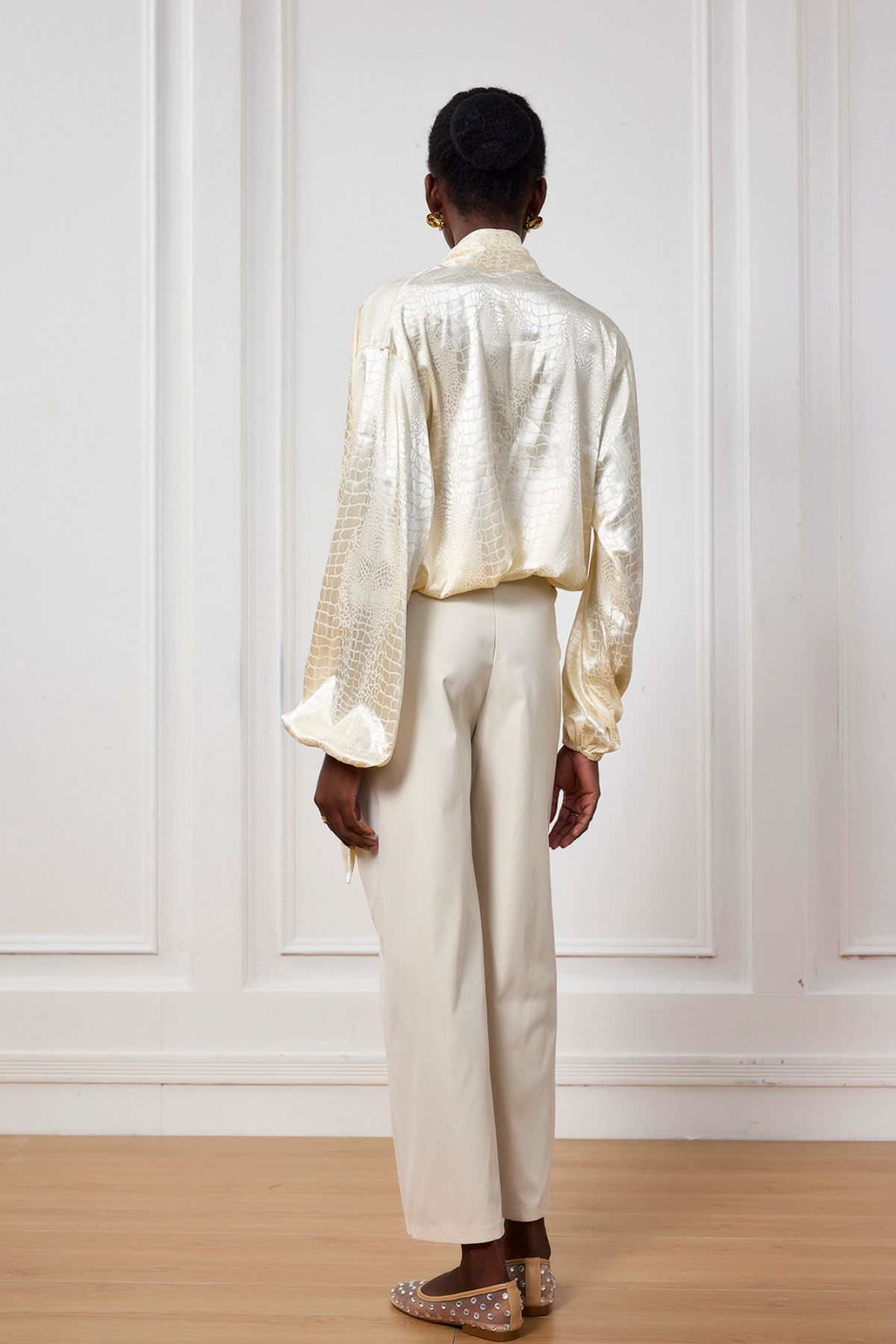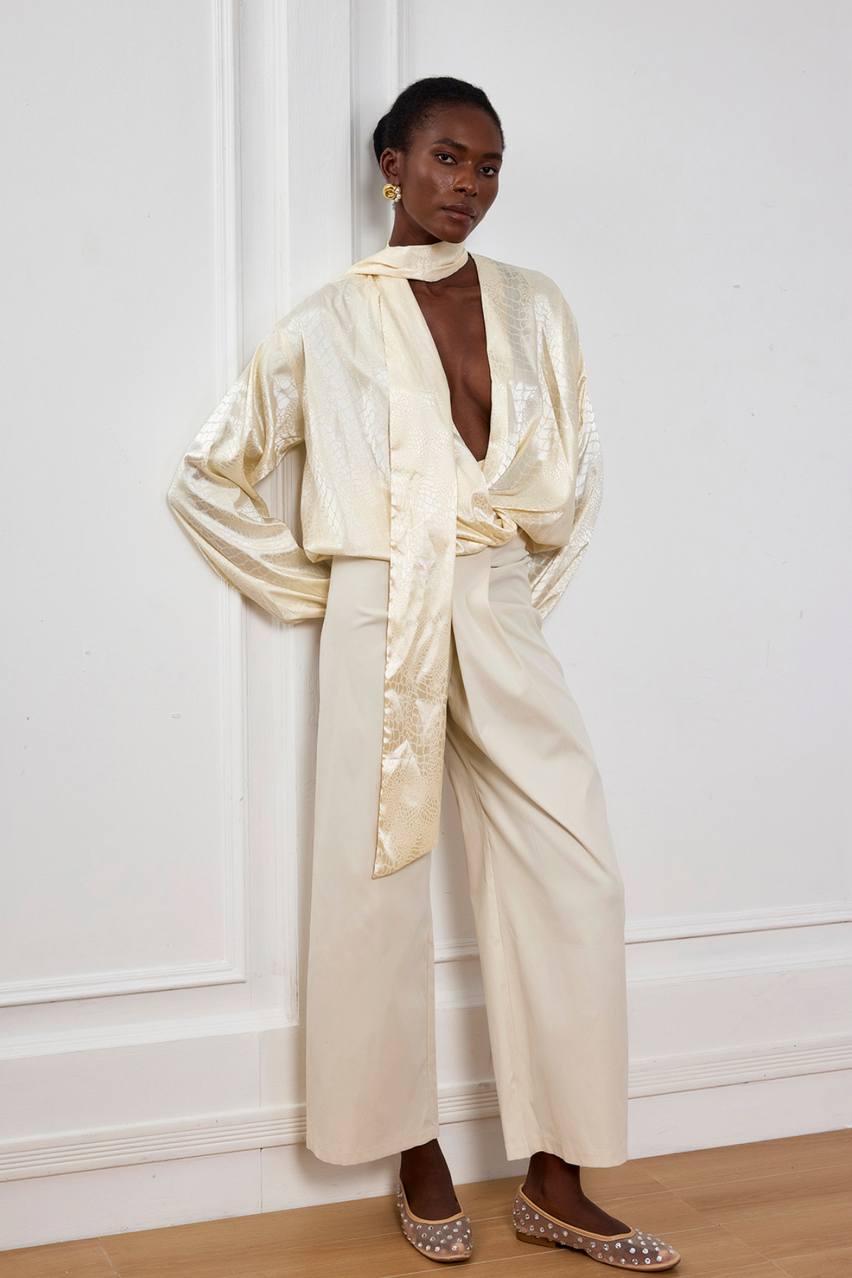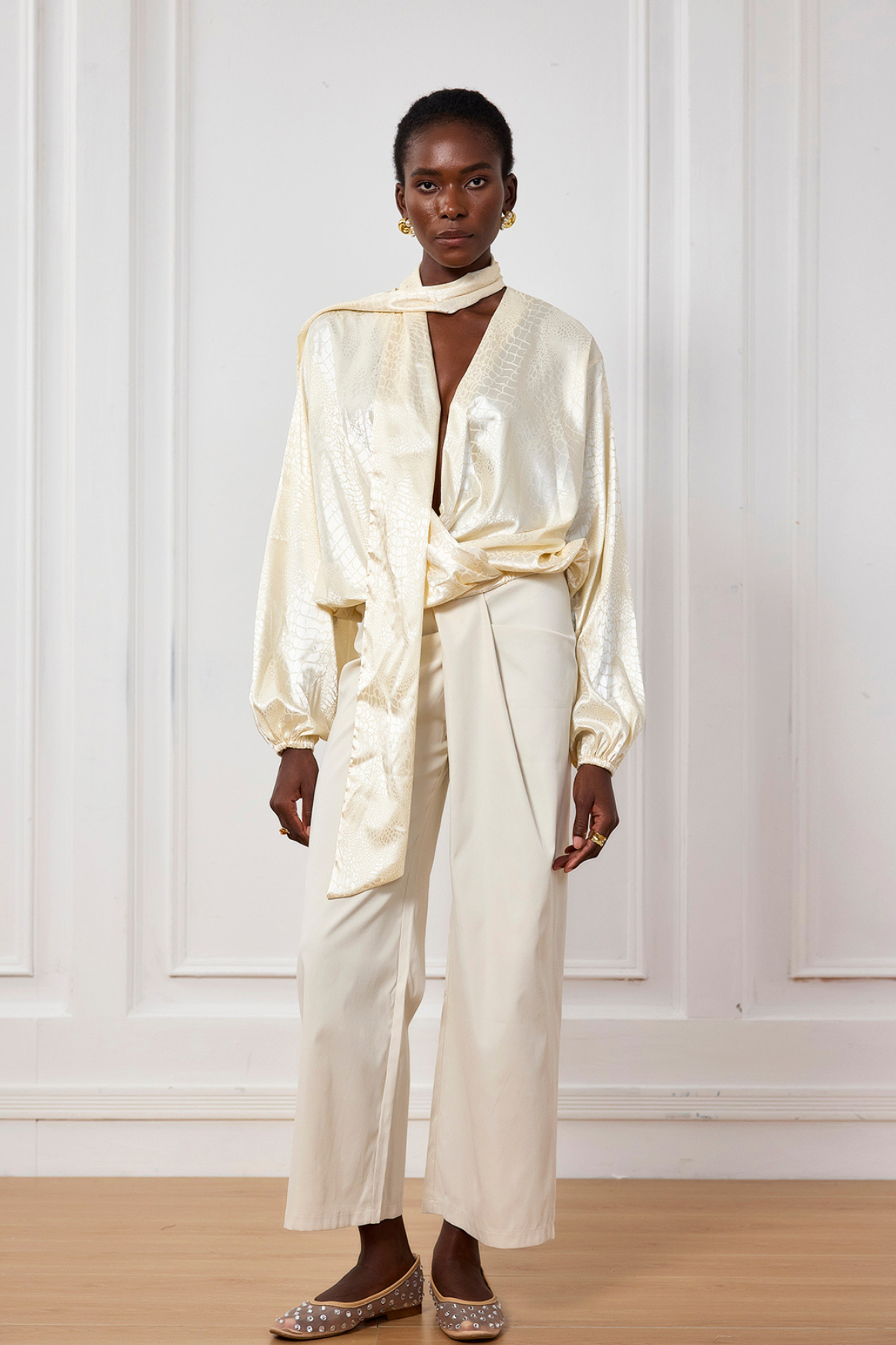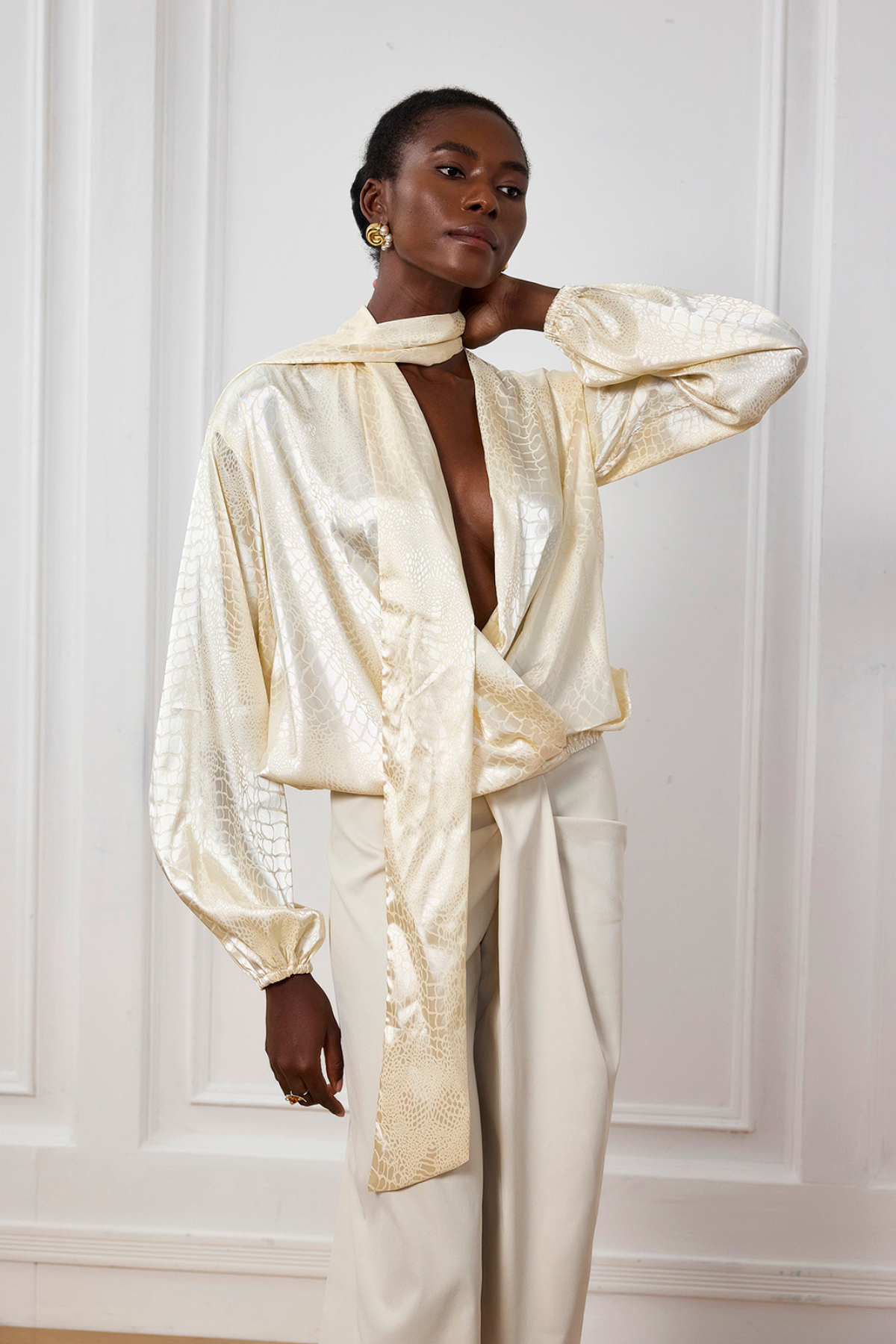 Reya Timsah Desenli Saten V Yaka Üst