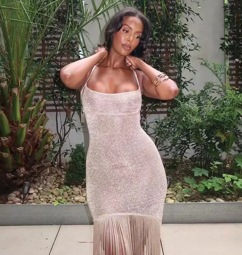 Clara Phoenix Parlak Püsküllü Bodycon Elbise